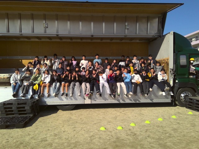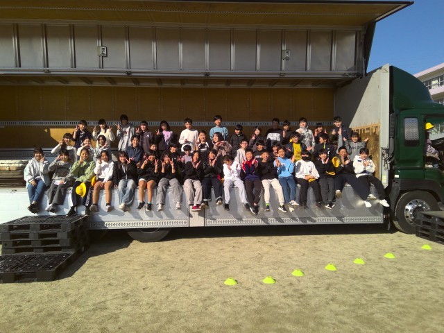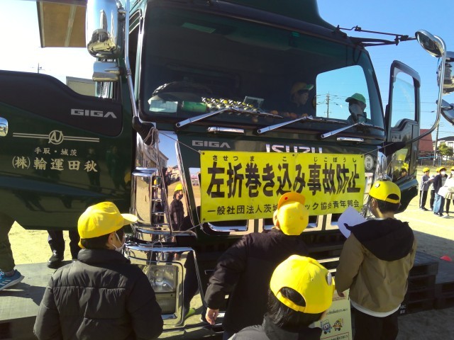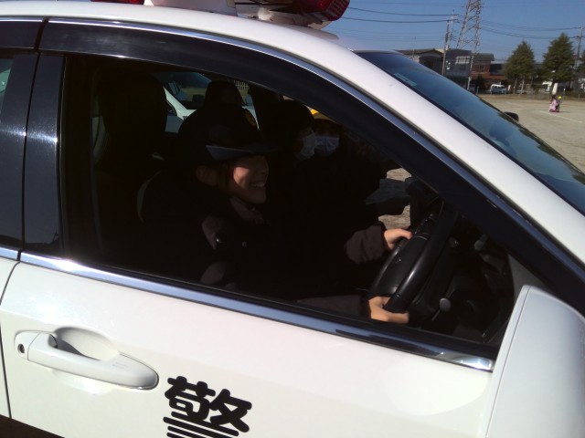 交通安全教室がありました。自転車の乗り方やトラックの内輪差などについて勉強をしました。トラックに乗って死角を確認したり、パトカーに乗ったりしました。とても盛り上がっていました。