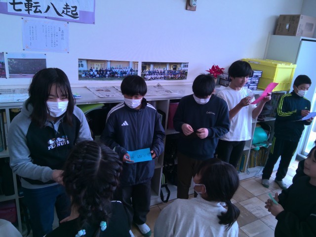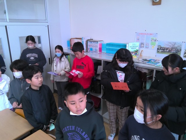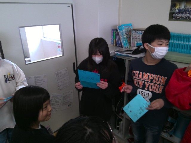 6年生を送る会の招待状を3年生からいただきました。手作り招待状をもらってうれしそうでした。木曜日が楽しみですね。