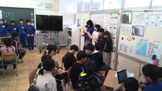 異学年交流で、総合的な学習の成果を3年生に発表しました。