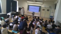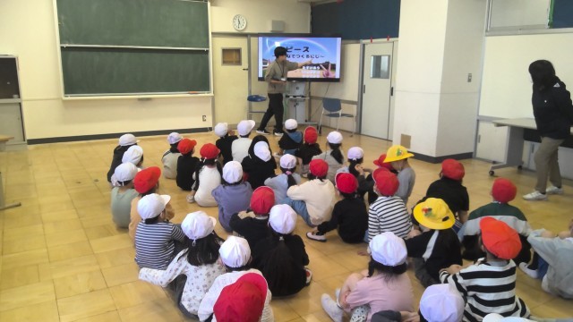 初日は、学年集会を行いました。みんなで学年目標を確認。今年の学年目標は、「ピース~みんなでつくるにじ~」。