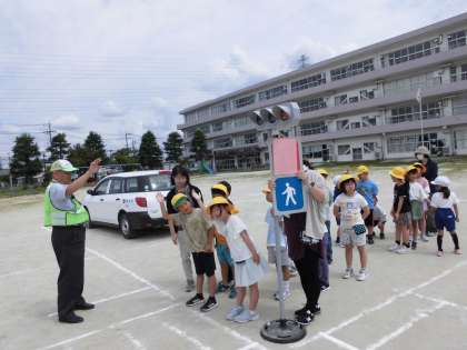 6月7日、交通安全教室の様子です。横断歩道や信号を実際に渡り、交通ルールを確認しました。意欲をもって、積極的に取り組んでいる姿がたくさん見られました。