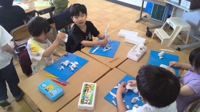 図工では、2年生になって初めて粘土を使いました。ひねって、伸ばして、ねじって。ひ...