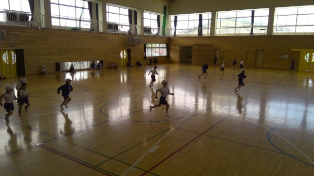 体力テスト本番に向けて、シャトルランの練習をしています。子供たちも、一生懸命に体...