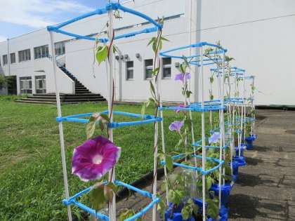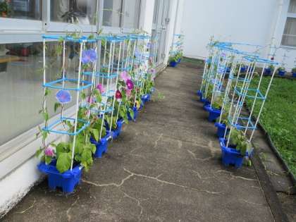 1年生が大事に育てているアサガオの花が咲き始めました。これからたくさんの花が咲くと思います。楽しみです。