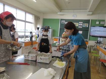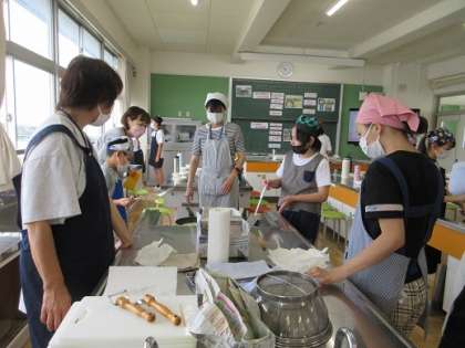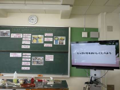今日は、のびやか学級・さわやか学級・すこやか学級は、「みんなでしゅうかくしたじゃがいもをおいしくたべよう」と親子調理実習をしました。