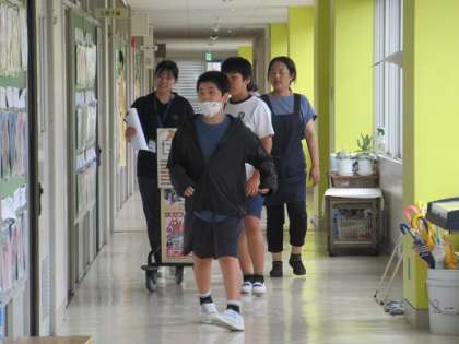 図書委員会の活動の様子です。 学級の図書の入れ替えをしてくれました。