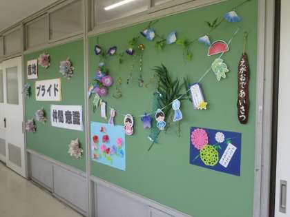さわやか学級の廊下の掲示物は、いつも季節を感じることができます。