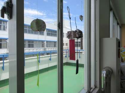 6年生の廊下には、手づくりの風鈴が飾ってありました。どちらもとても素敵です。