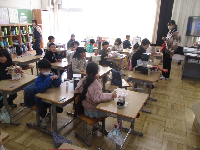 箱を組み合わせて作った作品をお互いに鑑賞しました。