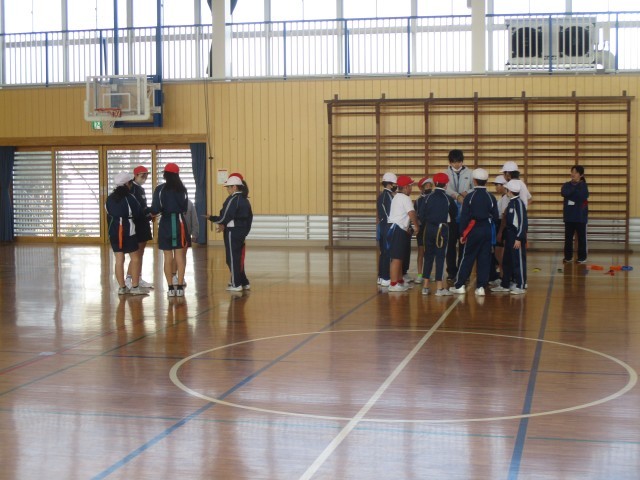 ベルトにつけたタグを互いに取りあう運動をしています。ルールを守って安全に活動できました。