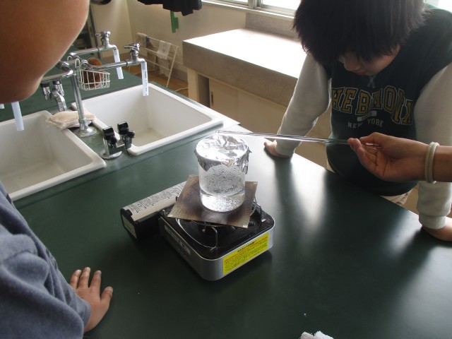 水が沸騰して気体に変化したことを確認する実験を行いました。