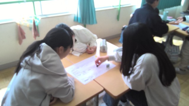 グループごとにすごろくゲームをして、とまった場所の質問に英語で答える学習です。