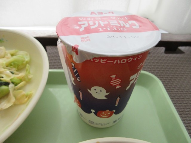 乳飲料が、ハロウィンバージョンになっていてかわいかったです。ボロネーゼハヤシ、初めて食べましたが、とてもおいしかったです。