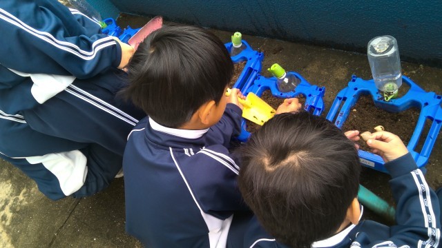 みんな大事そうに球根を持って、丁寧に植えていました。