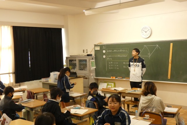 四角形の特徴を調べる学習をしました。対角線を引く演習も行いました。