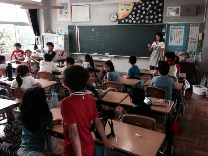 ソフトバレーボール 公開日 2014/09/05 更新日 2014/09/05 4年生 9月の体育は,ネット型ゲームのひとつであるソフトバレーボールを行います。 今日はルール説明とチーム決めをしました。バレーボールを経験したことがある児童は少ないので,ボールをつないだり打ったりする楽しさを味わわせたいです。