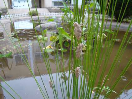 ミニビオトープにトンボのヤゴの抜け殻発見!!