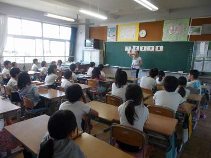 外国語の授業 公開日 2014/09/30 更新日 2014/09/30 3年生 数について習いました。日本語とはやはり発音の仕方が違うようです。しかし,ALTの真似をして,1から10の数字をどんどん練習することができました。
