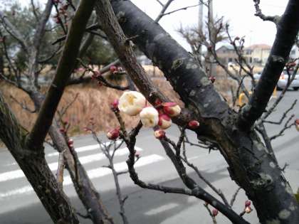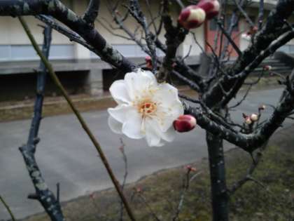 体育館の脇の梅が開花しました。寒い毎日ですが,確かに春に向かっています。
