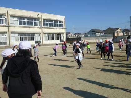 1月は,あいさつ運動に始まり,ふれあいタイムでは,クラス毎にドッチボールやなわとびをして体力をつけてきました。