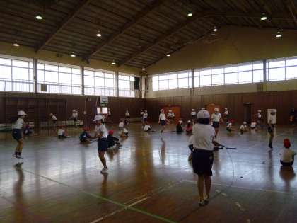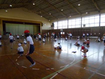 「ヨーイ!」ぴんとはりつめた空気の中,2回挑戦しました。