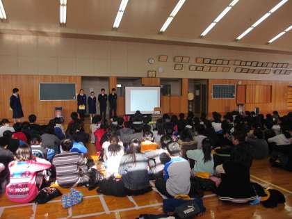 1・2年生の授業を参観させてもらったあとは,生徒会の生徒たちから学校生活の紹介をしてもらいました。説明会のあとは,自分の興味のある部活動の見学も行い,児童たちは楽しそうに報告をしてくれました。中学校入学が楽しみになった様子でした。