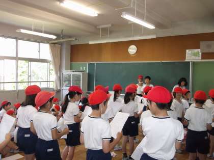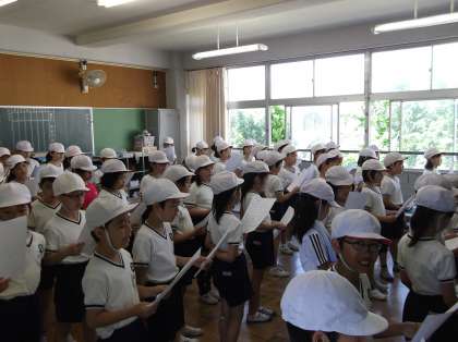 応援の練習を頑張っています。明日は運動会なので,練習の成果を期待して応援お願いします。