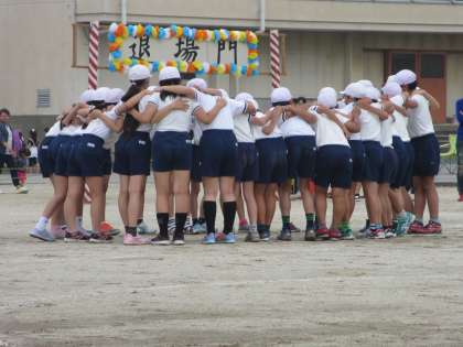 小学校最後の運動会 公開日 2016/05/28 更新日 2016/05/28 6年生 6年生にとって、小学校最後の運動会が終わりました。今年は1組が白組、2組が赤組で学級がまとまるのにもよいきっかけとなりました。結果はなんとわずか3点差で白組の勝利。みんな真剣に競技に取り組み,係の仕事も精一杯頑張っていました。とてもいい運動会になりました。保護者の皆様,朝早くからお弁当作りやたくさんの応援、ありがとうございました。 写真1枚目:1組の円陣(タイヤとり) 写真2枚目:2組のソーラン節