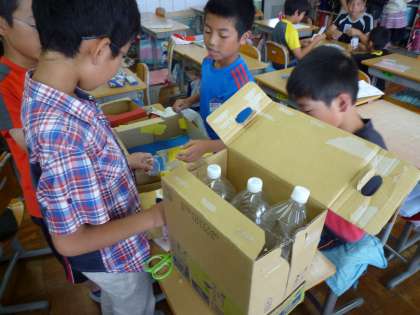 教室では,6月下旬のたんぽぽ交流に向けて,遊びの道具を作る姿が見られました。
