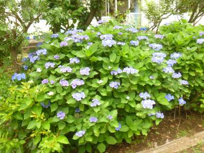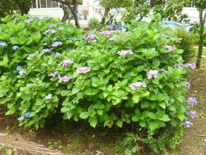 梅雨本番。中庭のあじさいがきれいに咲き始めました。