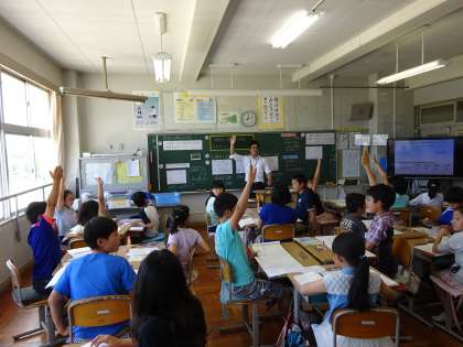 6月17日(金) 今日は,算数の研究授業がありました。取手市教育委員会から講師の先生に来校していただき,午前中に算数の授業公開をしました。今年度,本校は算数の研究委嘱校として,「伝え合い説明する活動」を通して「算数の思考力や表現力を育成する」取り組みをしています。真剣な学習態度,ハンドサインを活用した考え方の確認や広げ方,ペア学習やグループ学習での伝え合い,思考の流れを分かりやすく表現したノートなど,全校をあげてがんばってます。研究発表は10月ですが,子どもたちの学力向上のために,私たち教職員も力を合わせて研修に励んでいます。