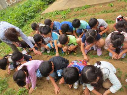 学校の畑でラッカセイを育てています。