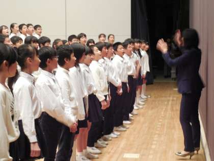 他校の演奏が始まると真剣に鑑賞し、聴く態度も立派でした。演奏中は写真撮影が禁止されているため、本番前のリハーサルの様子をお伝えします。写真屋さんが撮影した写真は後日、インターネットで注文できます。販売開始を楽しみにおまちください。
