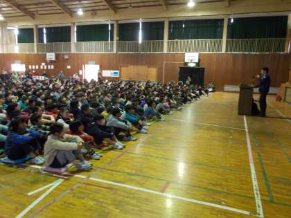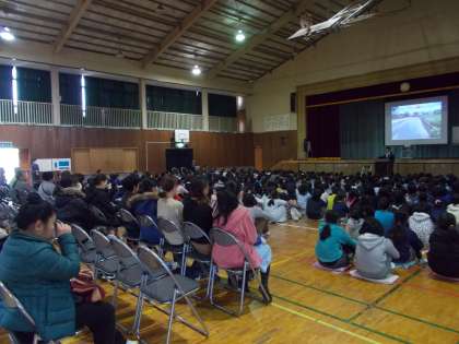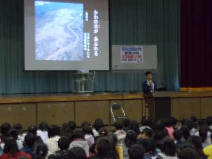 保護者や地域の皆様にもご参加いただき,台風や雷,地震など映像やアニメーションでわかりやすわかりやすくお話し下さいました。