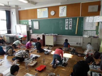 「お正月」の書き初めを行いました。一文字一文字丁寧に,力強く書く事が出来ました。