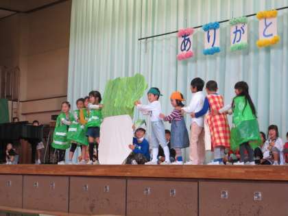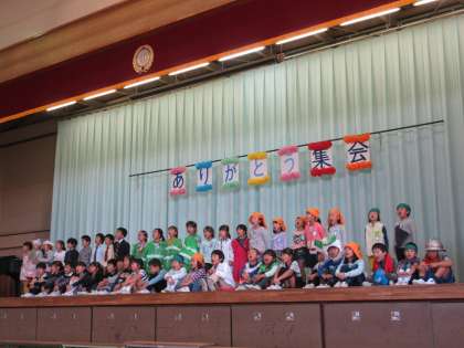 日頃の感謝の気持ちを込めて,精一杯やりきることができました。「大きなかぶ」では,練習当初,大きな体育館の隅まで声が届くか心配でした。しかし,練習を積むうちに声がどんどん大きくなり,やる気に満ちた姿になっていきました。本番では一年生らしさが光る立派な演技ができました。