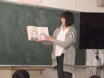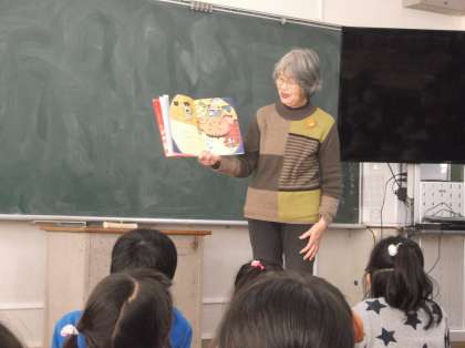 1組と同じテーマで読み聞かせを実施しました。(ええところ)では,わたしのええところは,何があるかな。友だちが一生懸命考えてくれたこと。(大きくなったら,君はなにになる)では,なりたいものは,いっぱいあって,みんなちがっていい。君は,何が好き,何をしたいか考えようということ。子ども達は,目を輝かせながら話に聞き入っていました。