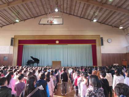 三学期 始業式 公開日 2019/01/25 更新日 2019/01/25 1年生 冬休みを明けて,また一回り大きくなった様子です。早いもので4月には2年生ですね。三学期は一年間のまとめの学期。目標を持って過ごしましょう。今年も宜しくお願い致します!