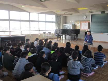 14日(木)お話会 公開日 2019/02/16 更新日 2019/02/16 6年生 藤代図書館の方と、ボランティアの方によるお話会が実施されました。「仙人の教え」「勇敢なアイリーン」「山の上の火」という様々なお話の読み聞かせなどをしてくださいました。子ども達は熱心に聞き入っていました。 写真の1枚目は1組、2枚目は2組の様子です。