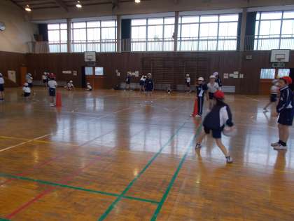 学年体育(キャッチテニス) 公開日 2019/02/19 更新日 2019/02/19 3年生 今日は3年生の学年体育の時間に,キャッチテニスのクラス対抗戦をしました。各クラスでの団体戦の順位が同じだったチーム同士で対戦しました。どの対戦も接戦続きで,結果は3勝3敗で引き分けでした。自分のクラスの選手を応援する姿もたくさん見られ,団結力がさらに高まりました。
