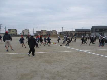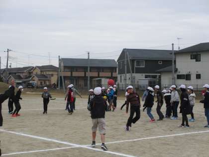 水曜日の昼休み、6年生に校庭をひとりじめさせてもらいました!広いコートを作り、ボール2個、フリスビー2個の計4つを使ってドッチボールです!思いっきり体を動かし、キャーキャー言いながら楽しく試合をしました。卒業前に楽しい思い出作りができました。