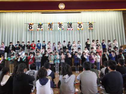 ありがとう6年生 公開日 2019/03/04 更新日 2019/03/04 2年生 今日は、6年生を送る会がありました。 2年生からは、折り紙のメダルをプレゼント。小さな贈り物に、感謝の気持ちを込めました。学年発表では、「こぐまの2月」の合奏と「ありがとう6年生」の合唱をしました。緊張もありましたが、一生懸命発表できました。 6年生と過ごす時間も残り少し。1日1日を大切にしたいと思います。