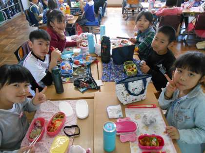 今日はお弁当の日でした。食べるのを待ち遠しそうにしていた子どもたち。時間になると「おべんとう!おべんとう!」の大合唱でした!みんなでわいわい楽しく食べました。ご協力ありがとうございました。