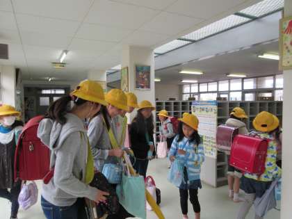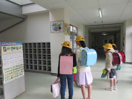 朝,1年生の昇降口で登校班の上級生が心配そうに待っていてくれます。 ありがとう。