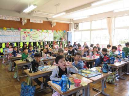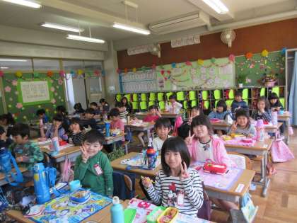 PTA参観がありました。家族が来るのが楽しみで朝からウキウキ・ワクワクの1年生でした。待ちに待った楽しいお弁当タイムの様子です。