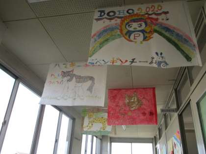 チーム旗が完成しました! 公開日 2020/10/27 更新日 2020/10/27 5年生 いよいよ来週にせまってきた 5年生の校外学習DOHO2020。 ついに4チームのチーム旗が完成しました。 廊下に並んで飾られたチーム旗をながめて、 子どもたちのテンションもあがってきています!