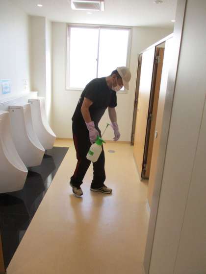 校内の消毒作業 公開日 2021/06/09 更新日 2021/06/09 学校 子どもたちが下校した後、消毒を行うための用務員さんが、校舎中のトイレや子どもたちがよく触れる場所の消毒を丁寧に行ってくれています。おかげさまで、子どもたちが安心して学校生活を送ることができています。暑い中、いつもありがとうございます。