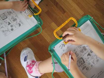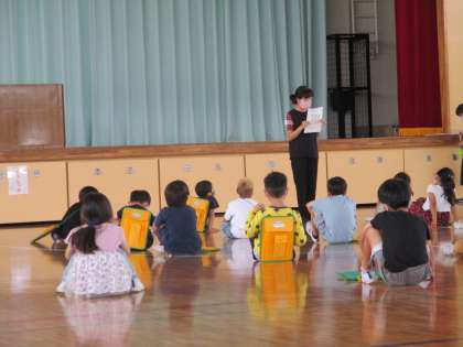 1年生のみんなは、明日の「公園探検」に向けた先生のお話を聞いていました。