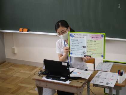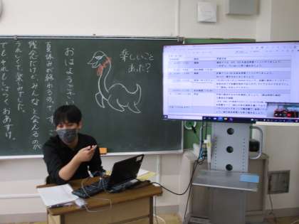 感染拡大防止のために今日からオンラインスタディが始まりました。子ども達とつながるために先生方も工夫をしています。操作の方法をホワイトボードで見せたり、あらかじめ作っておいた資料を使って説明したりしました。
