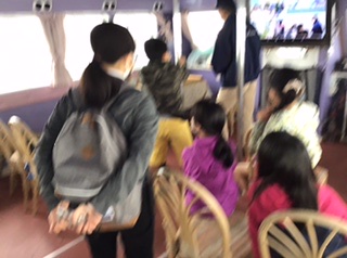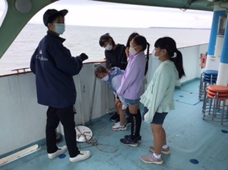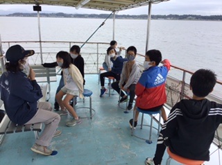 3班に分かれて学習です。1班は船内で霞ヶ浦の色について、2班は水質について、3班は2階に上がって霞ヶ浦の様子を観察です。